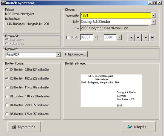 4.3.Boríték nyomtatás